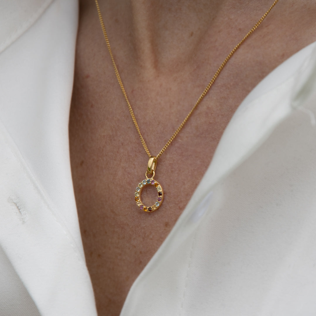 World Goals Vedhæng - Blankpoleret Forgyldt Sterling Sølv m. 17 Multi color