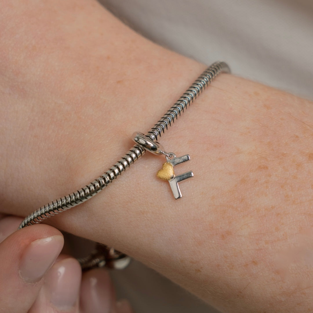 Bogstav F - Hænger Charm 4 mm Til Armbånd - Blankpoleret Bicolor