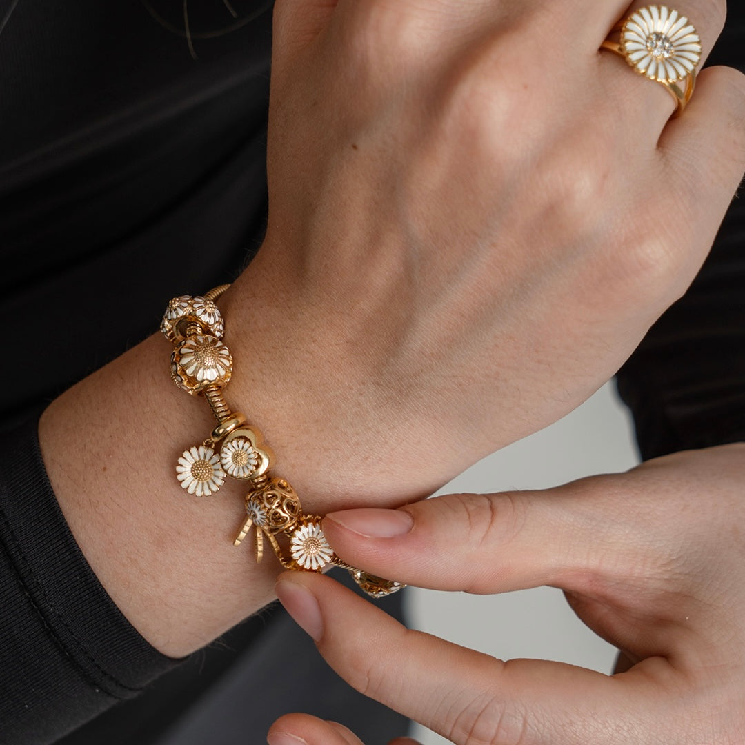 Marguerit - Charm 4 mm Til Armbånd - Blankpoleret Forgyldt Sterling Sølv