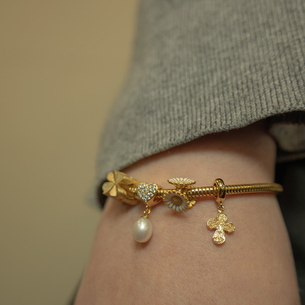 Marguerit Triangle - Charm 4 mm Til Armbånd - Forgyldt Sterling Sølv