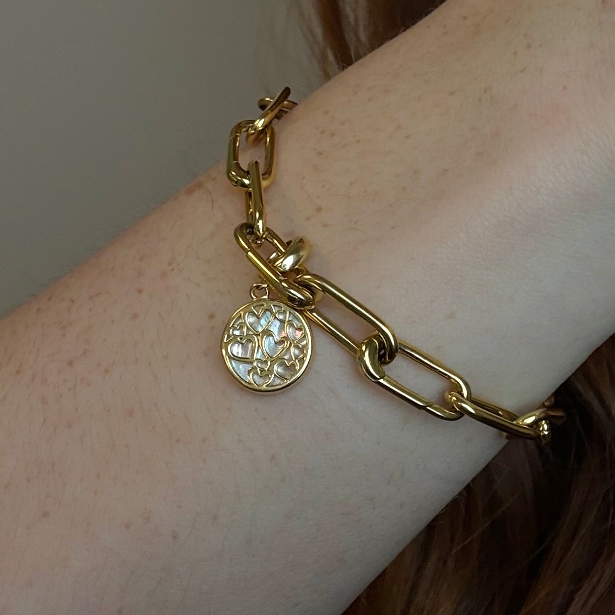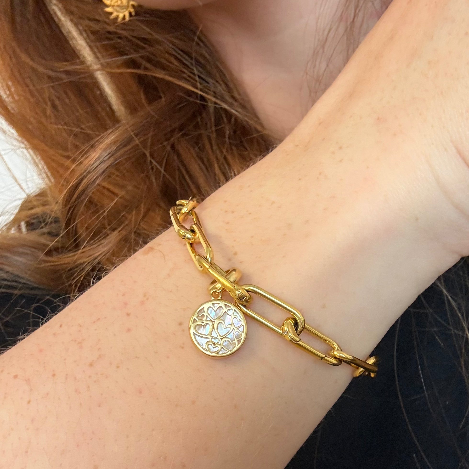 Forgyldt Small Link Armbånd Til Charms - m. 4 mm Charm i Forgyldt Sterling Sølv og Smykkeskrin