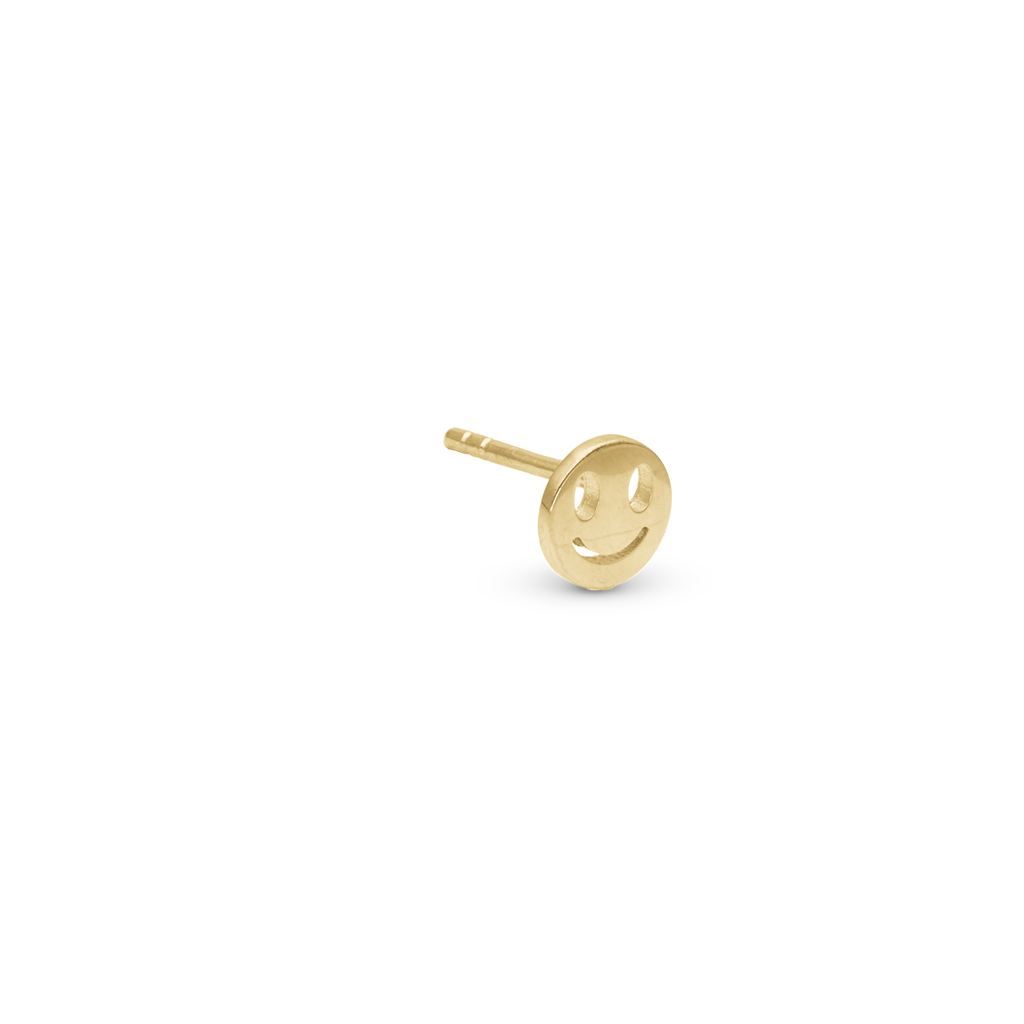 Smiling er en allergivenlig single stud i forgyldt 925 sterling sølv, designet som et sødt, smilende ansigt på 6 mm. Perfekt til at sprede god energi og give dit look et legende twist – alene eller som en del af et stacked ear party.