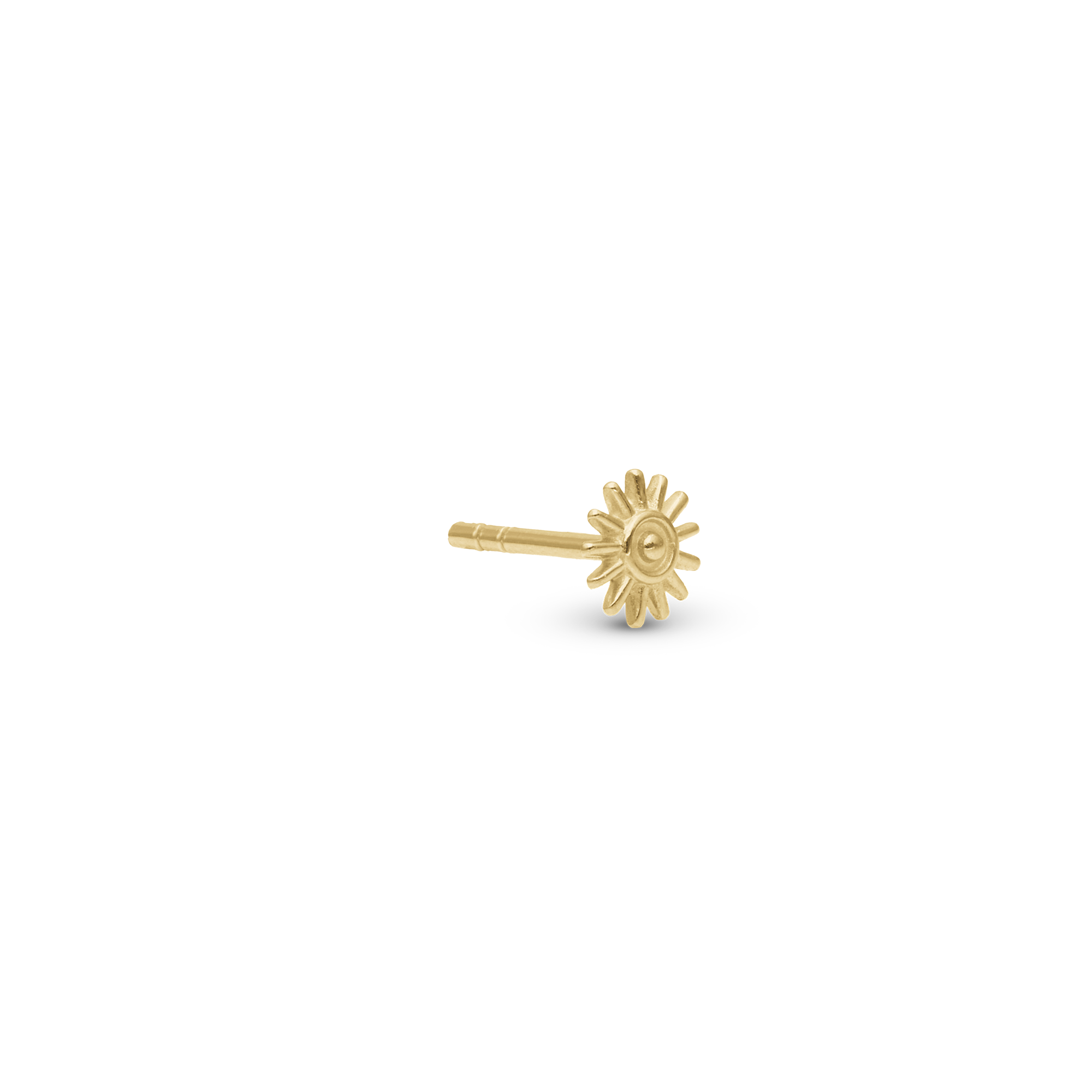 Sunshine er en allergivenlig single stud i forgyldt 925 sterling sølv, designet som en strålende sol med 13 fine solstråler. Med sin 6 mm størrelse er den perfekt til et clean, glødende look – eller som et legende element i dit ear stack.
