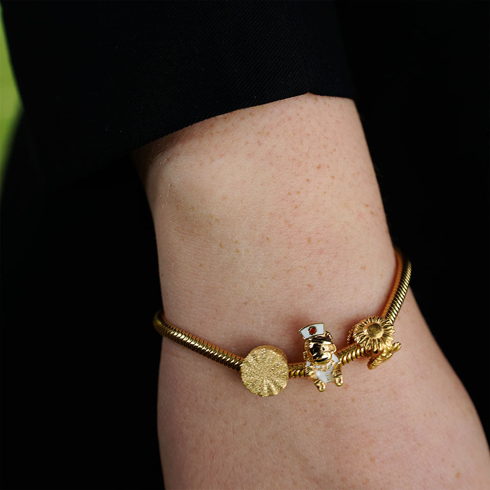 Charms med de evigt smukke margueritter tilfører dit armbånd et strejf af nordisk elegance og tidløs skønhed. Margueritten er et symbol på uskyld, glæde og sommer, og med en margueritcharm får du et smykke, der lyser op med et strejf af dansk design historie og spreder positiv energi.