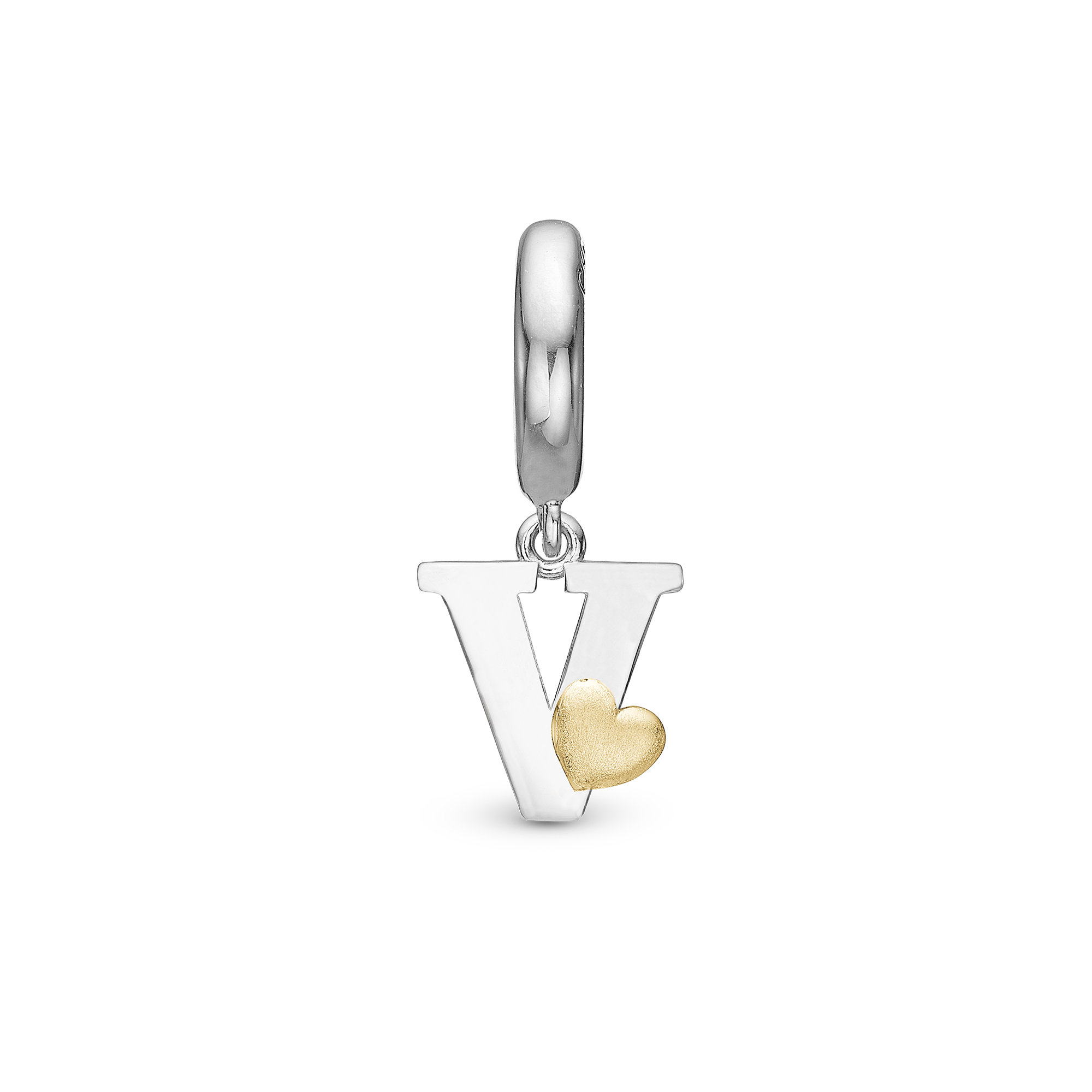 Bogstav V charm fra CHRISTINA er udarbejdet i designet bi-color, og er derfor både til dig der bruger sølv men også forgyldt/ guldbelagt/ guld. Med CHRISTINA bogstavs-charms kan du fortælle din helt egen historie. Du kan vælge, at have dem som intialer for nogle du har nær, det kunne være dine børn, kone, mand eller kæreste. Sammensæt ord og bogstaver, der giver dit CHRISTINA Classic læderarmbånd, den betydning du leder efter i et personligt udtryk. Start din samling af personlige bogstavscharms fra CHRISTINA nu, og skab din helt egen historie. CHRISTINA bogstavs-charms er den perfekte personlige gaveidé, til dem du holder af. Bogstav V charm passer til Classic og 3-string