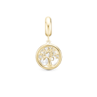 Tree of Life perlemor - Hænger Charm 4 mm Til Armbånd - Blankpoleret Forgyldt Sterling Sølv m. 3
