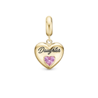 Daugther charm er udarbejdet i 18 karat forgyldt sterling sølv, og har en funklende pink Turmalin. Daughter charmen er en tosidet skønhed, hvor der på forsiden er indgraveret Daughter og på bagsiden You Make Me Proud. Smykket stråler af kærlighed, og er en personligt smykke, som du kan give i gave, til en datter du kender. Daughter charmen passer til Slim læderarmbånd og Sølvarmbånd, men også som vedhæng til dine halskæder.
