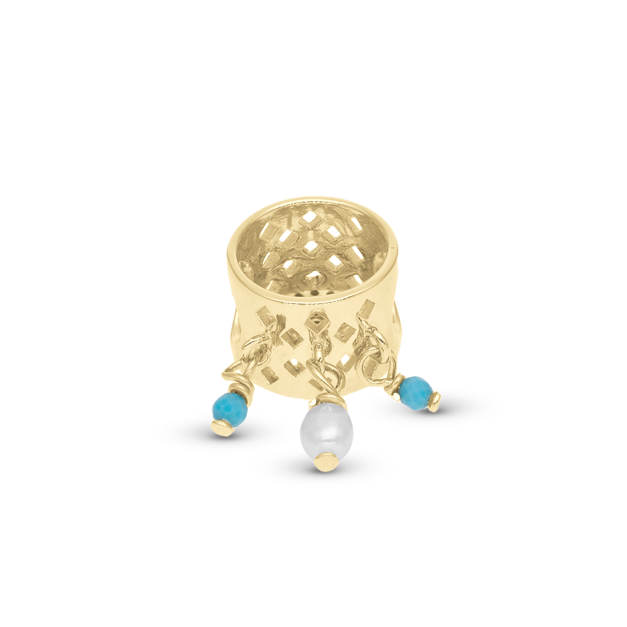 Rengør skånsomt med en tør pudseklud for at bevare guldbelægningen, da denne vil blive slidt over tid. Overvej genforgyldning, hvis smykket mister sin glans