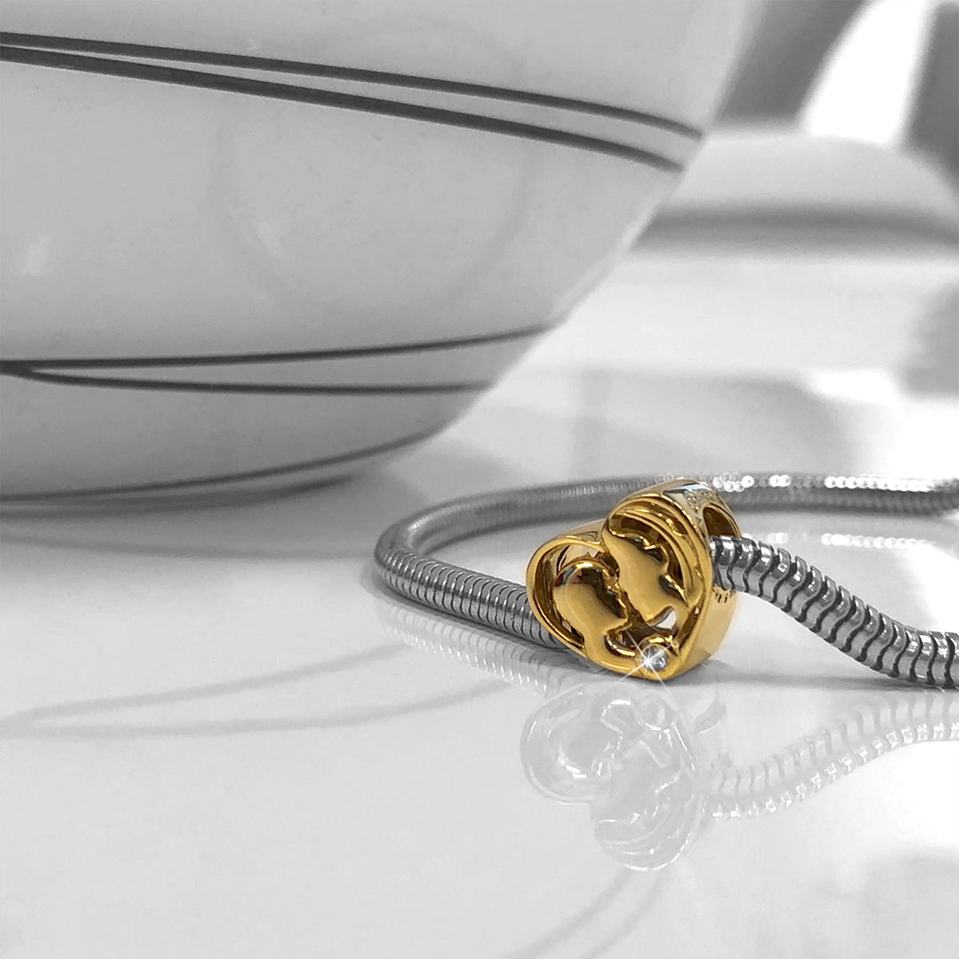 Mother & Child charm i forgyldt sølv med et design af en mor og hendes barn. Charmen har de fineste detaljer der gives af de to ægte topaser, men også charmens fine silhuet af moren og barnet, hvor der er tænkt over hver detalje. Mother & Child er til dig som leder efter en gave til en mor, der fortjener at få en personlig gave. Denne charm passer til CHRISTINAS Slim læderarmbånd og Sølvarmbånd.