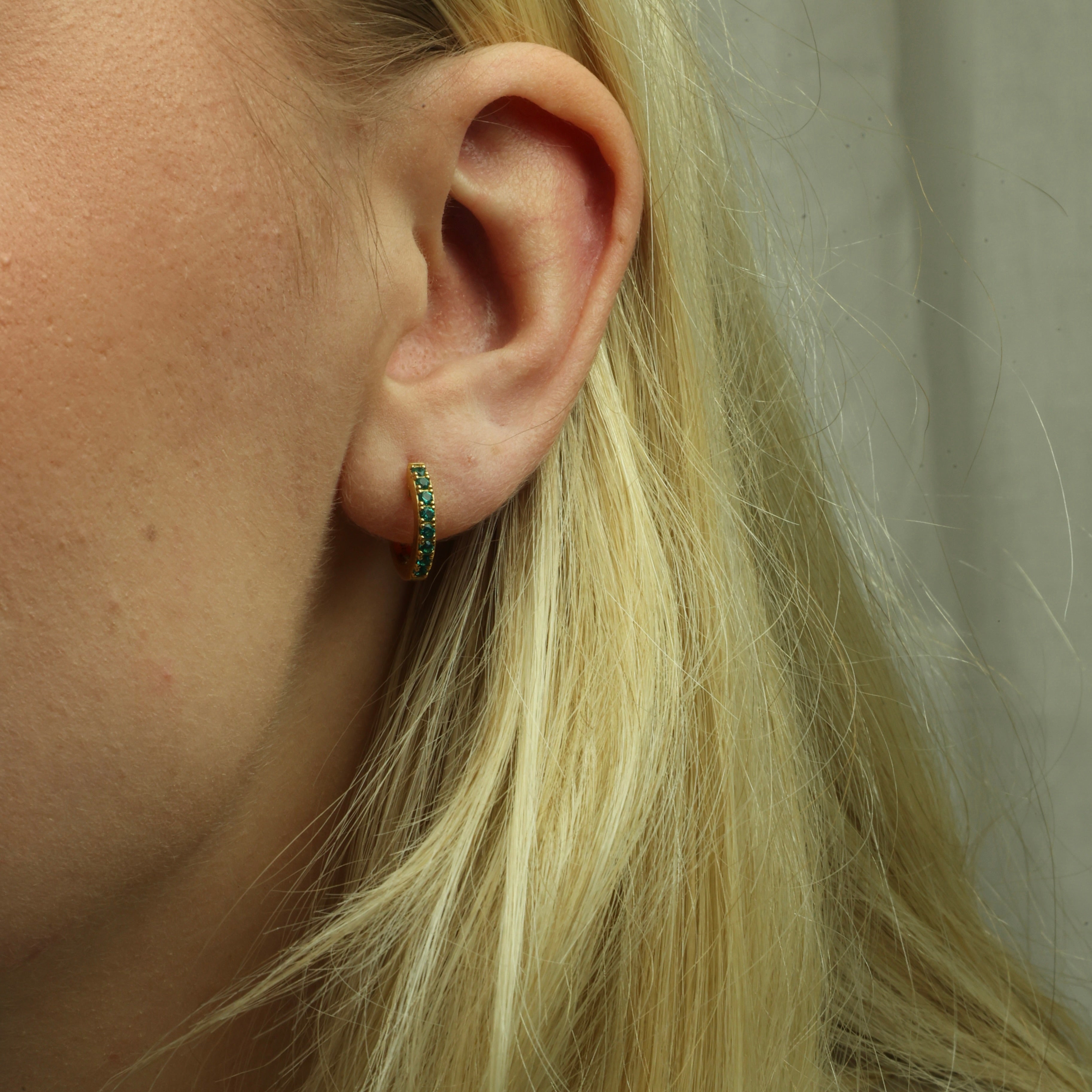 Green Circles Hoops - Forgyldt Sterling Sølv m. 16 Grønne Cubic Zirkonia