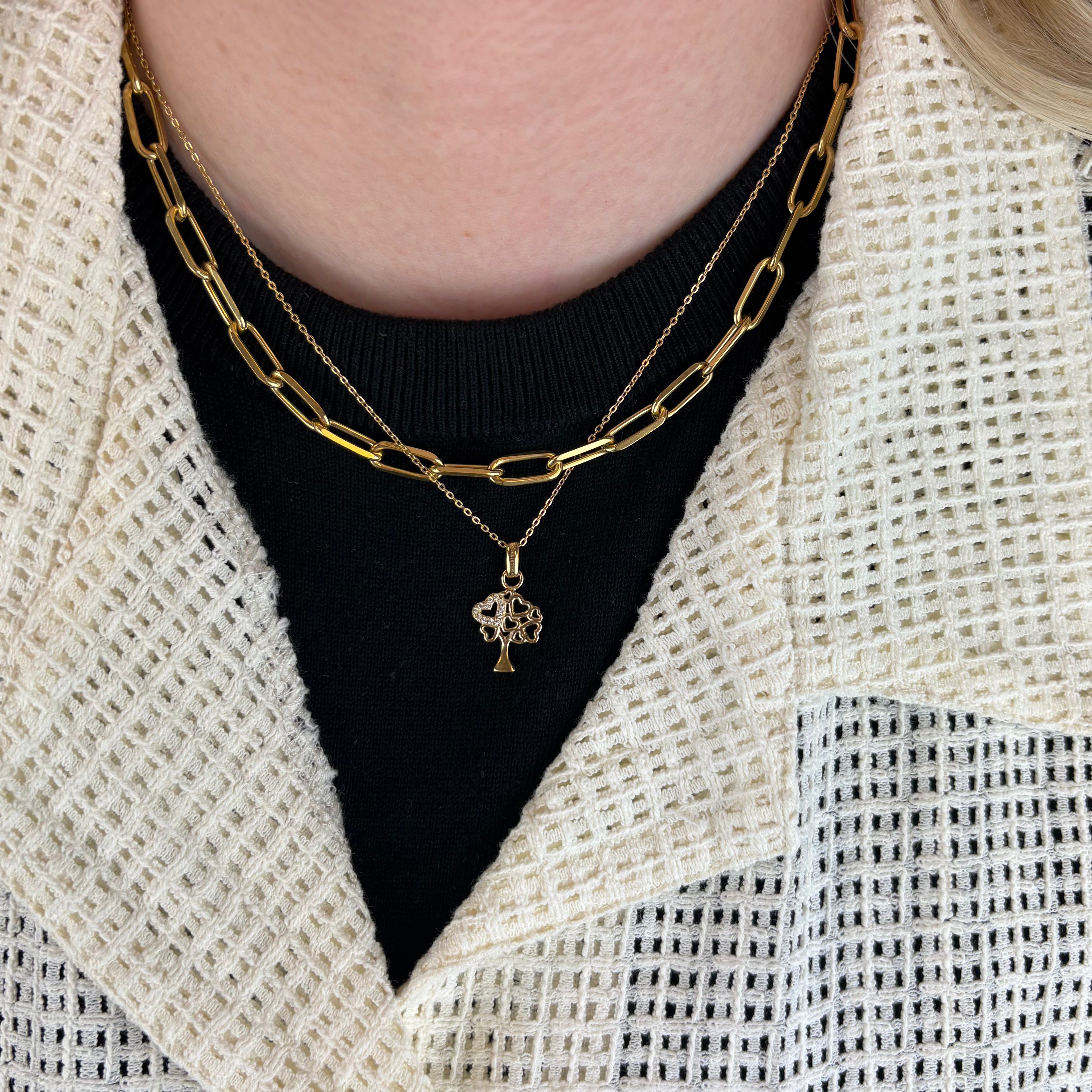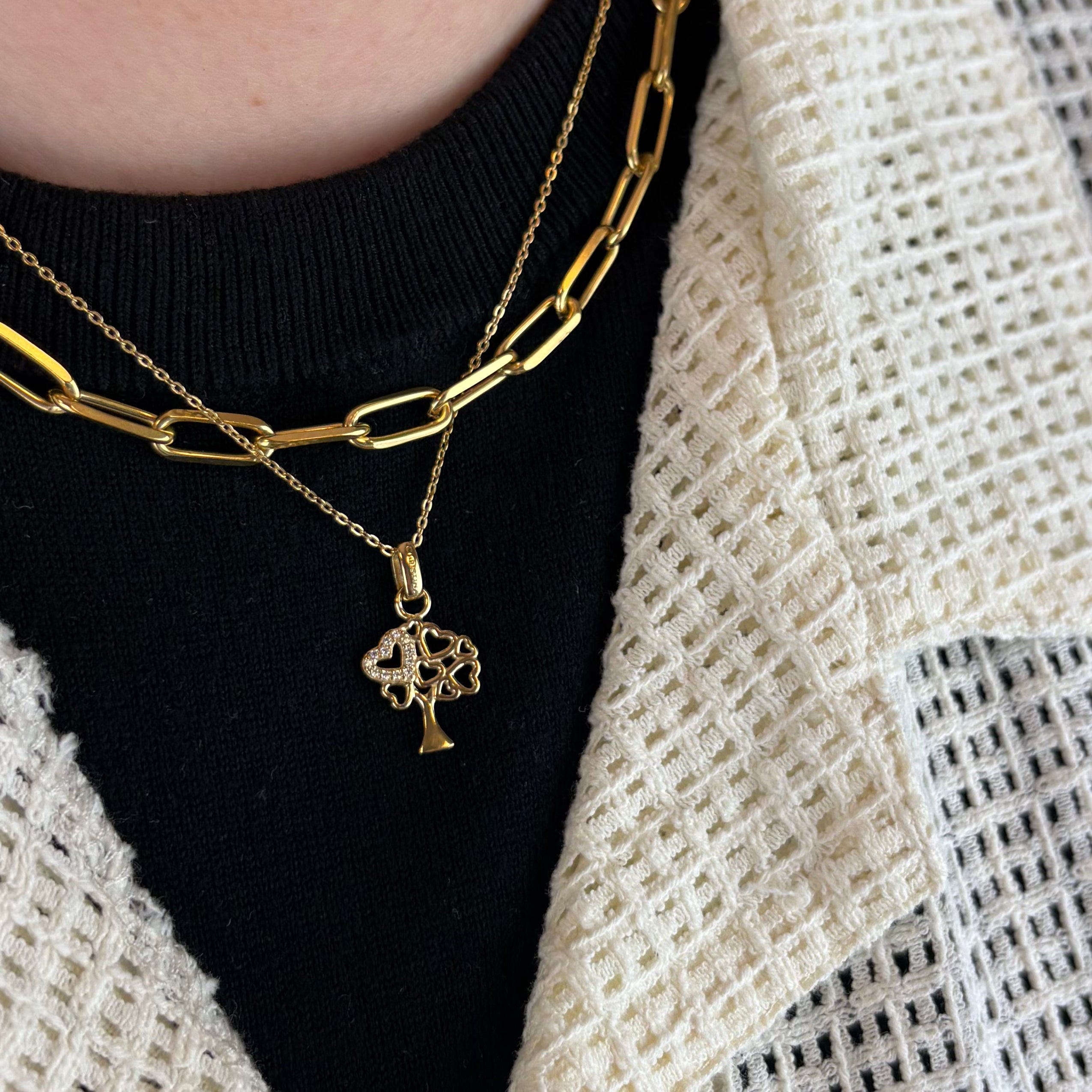 I dette elegante familietræ's vedhæng, får du selve træets blade formet som store og små hjerter, som associerer til både familiens voksne og børn - fuldendt af 12 hvide CZ. Virkelig elegant og tidløst hjertevedhæng i sterlingsølv med 18 karats forgyldning, til dig der elsker kærligheden til familien.