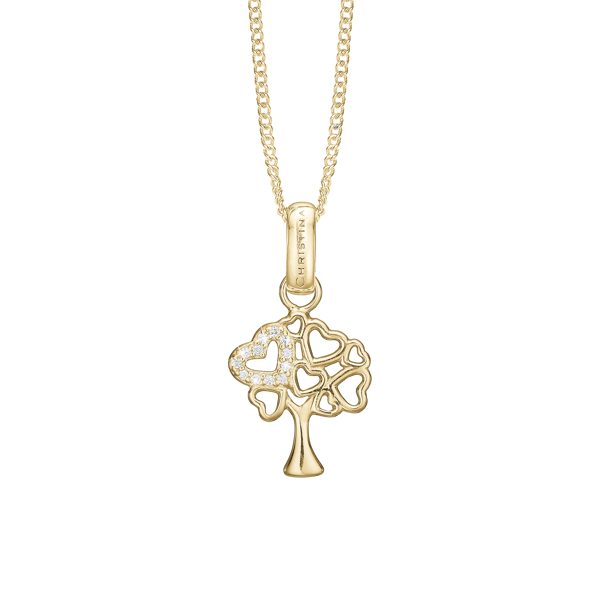 Tree of Hearts Vedhæng - Blankpoleret Forgyldt Sterling Sølv m. 12 Hvide Cubic Zirkonia