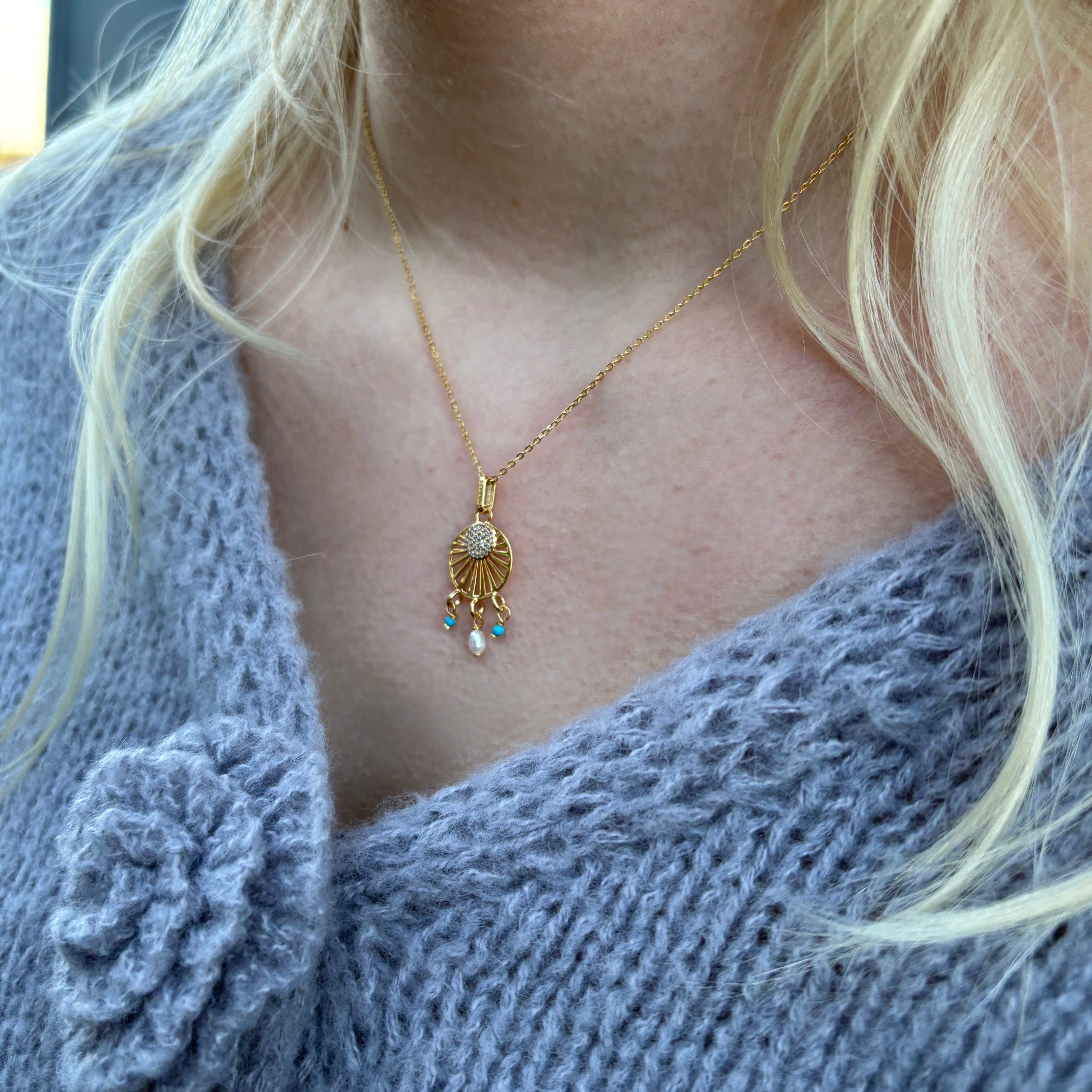 Ocean sunset Vedhæng - Blankpoleret Forgyldt Sterling Sølv m. 37 Hvide Cubic Zirkonia