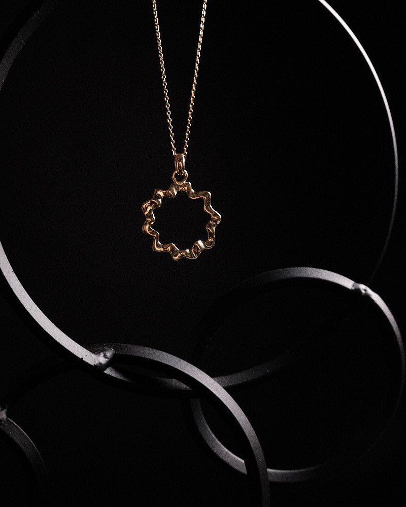 Rengør skånsomt med en tør pudseklud for at bevare guldbelægningen, da denne vil blive slidt over tid. Overvej genforgyldning, hvis smykket mister sin glans