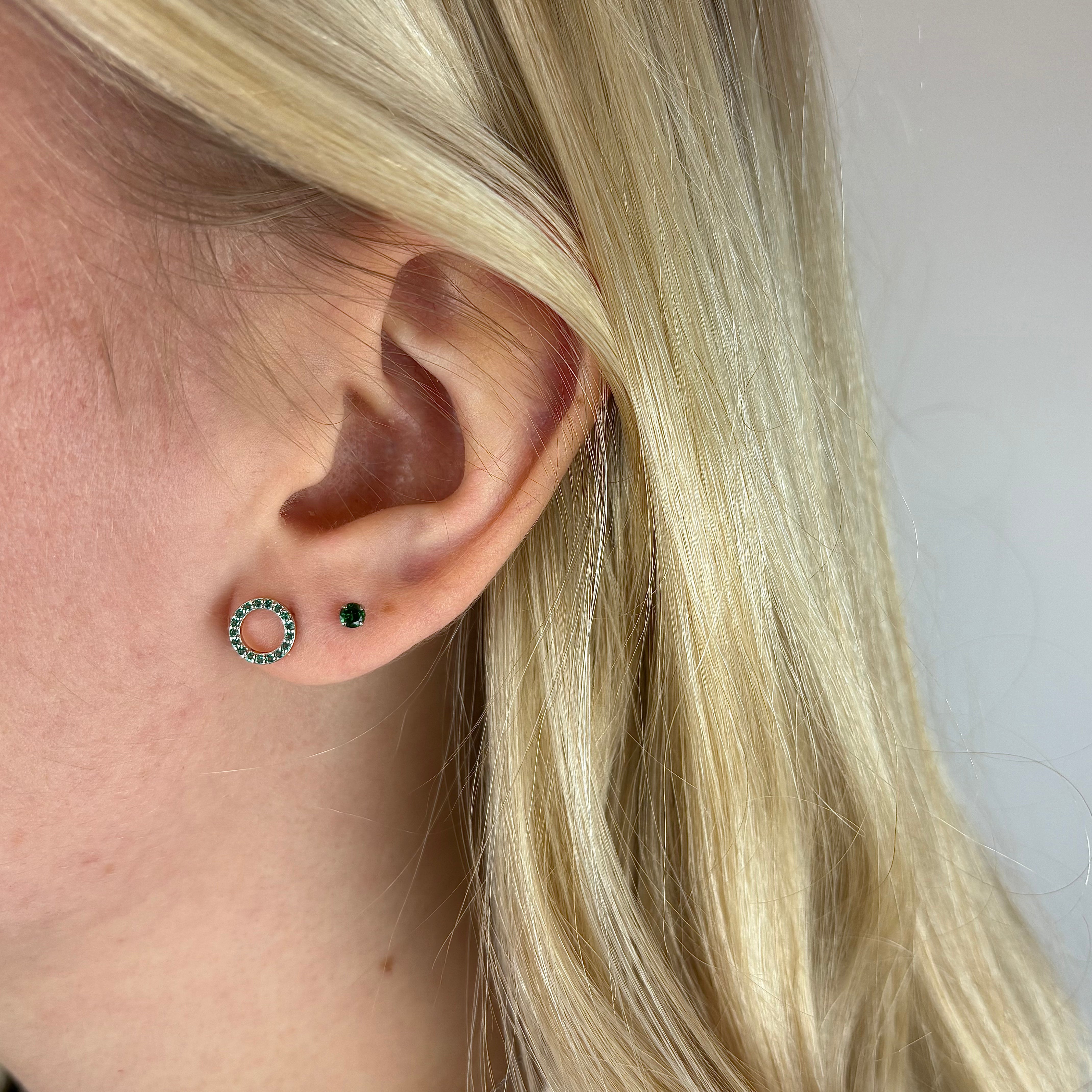 Green Nature Enkelt Ørestik / Single Stud - Blankpoleret Sterling Sølv m. 1 Cubic Zirkonia