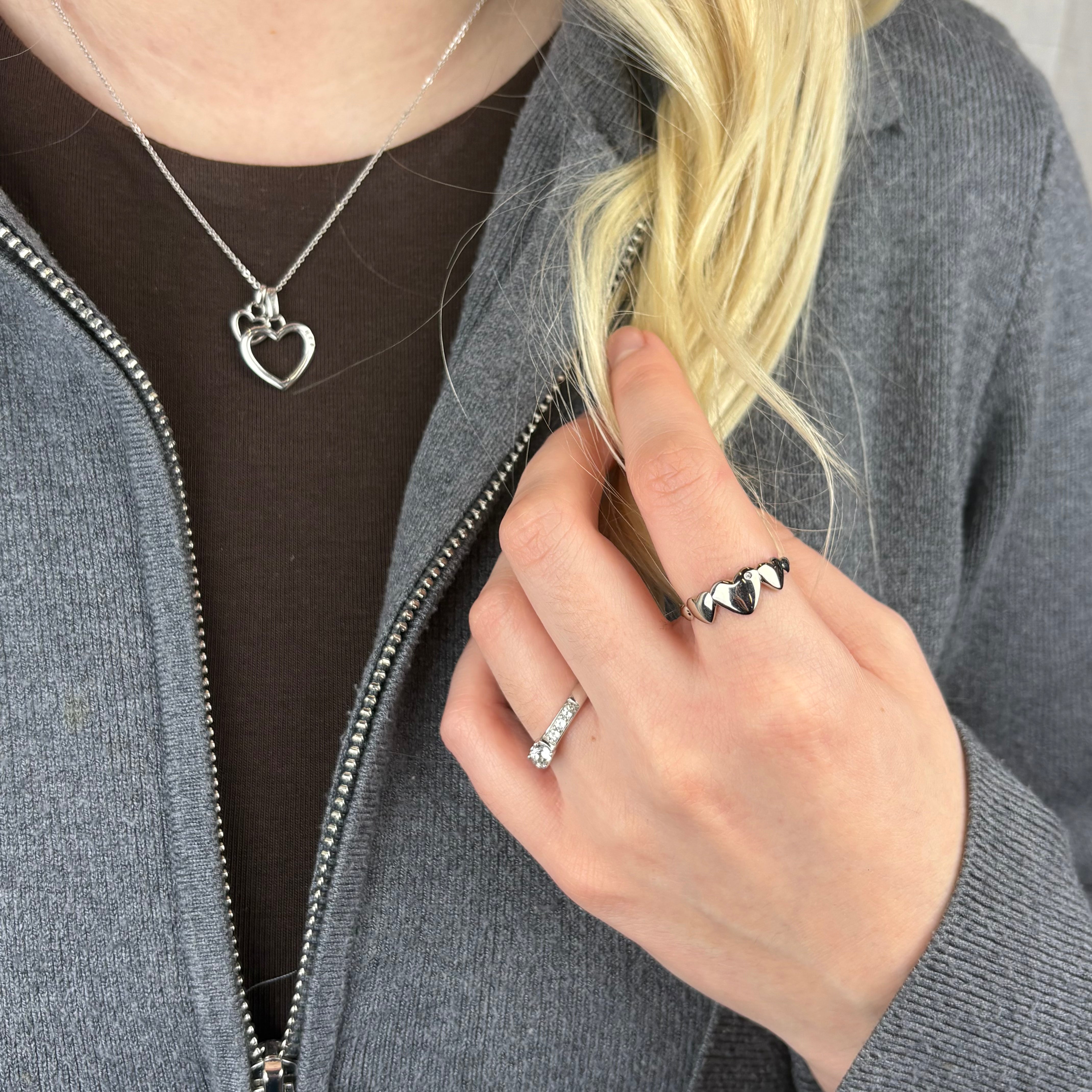 Unik hjertering designet med fem hjerter i forskellige størrelser, hvor det største hjerte i midten har en ægte topas. Smuk at kombinere sammen med vores Diamond Dust.
