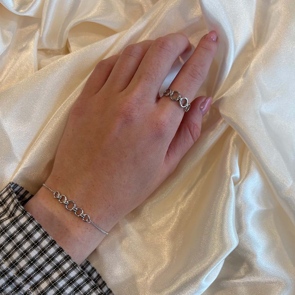 Vores Links ring kan styles til både hverdag og fest. Den blanke overflade af sammensatte lænker, giver et edgy og skarpt look, som kan bruges uanset hvad anledningen skulle være.