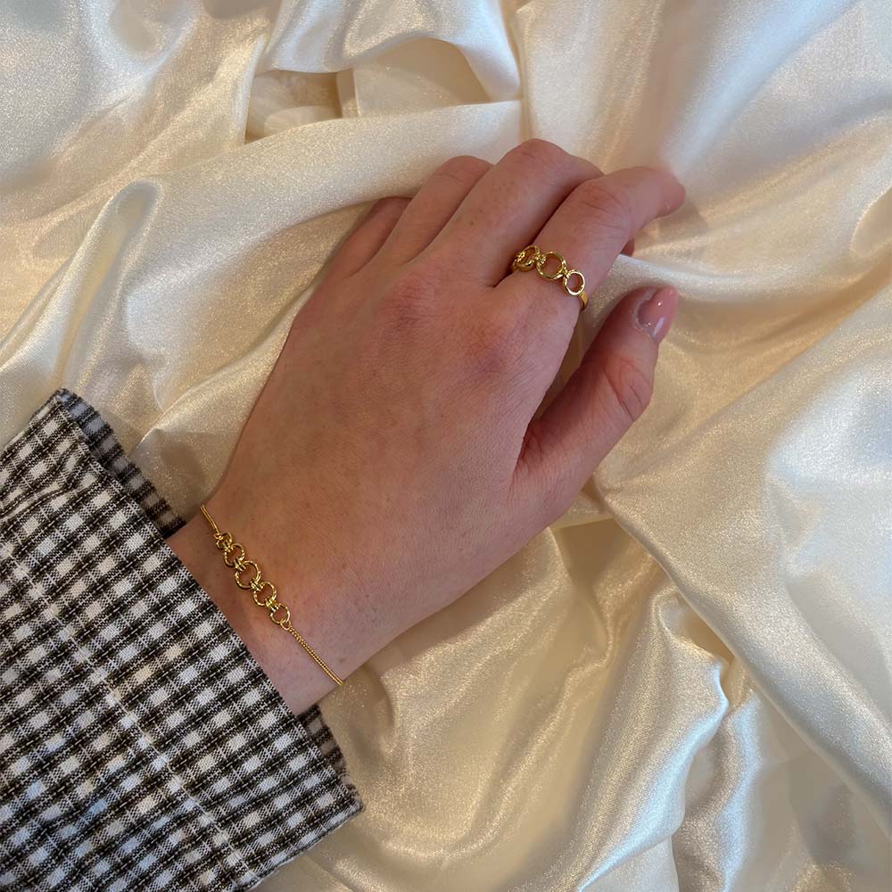 Vores Links ring kan styles til både hverdag og fest. Den blanke overflade af sammensatte lænker, giver et edgy og skarpt look, som kan bruges uanset hvad anledningen skulle være.