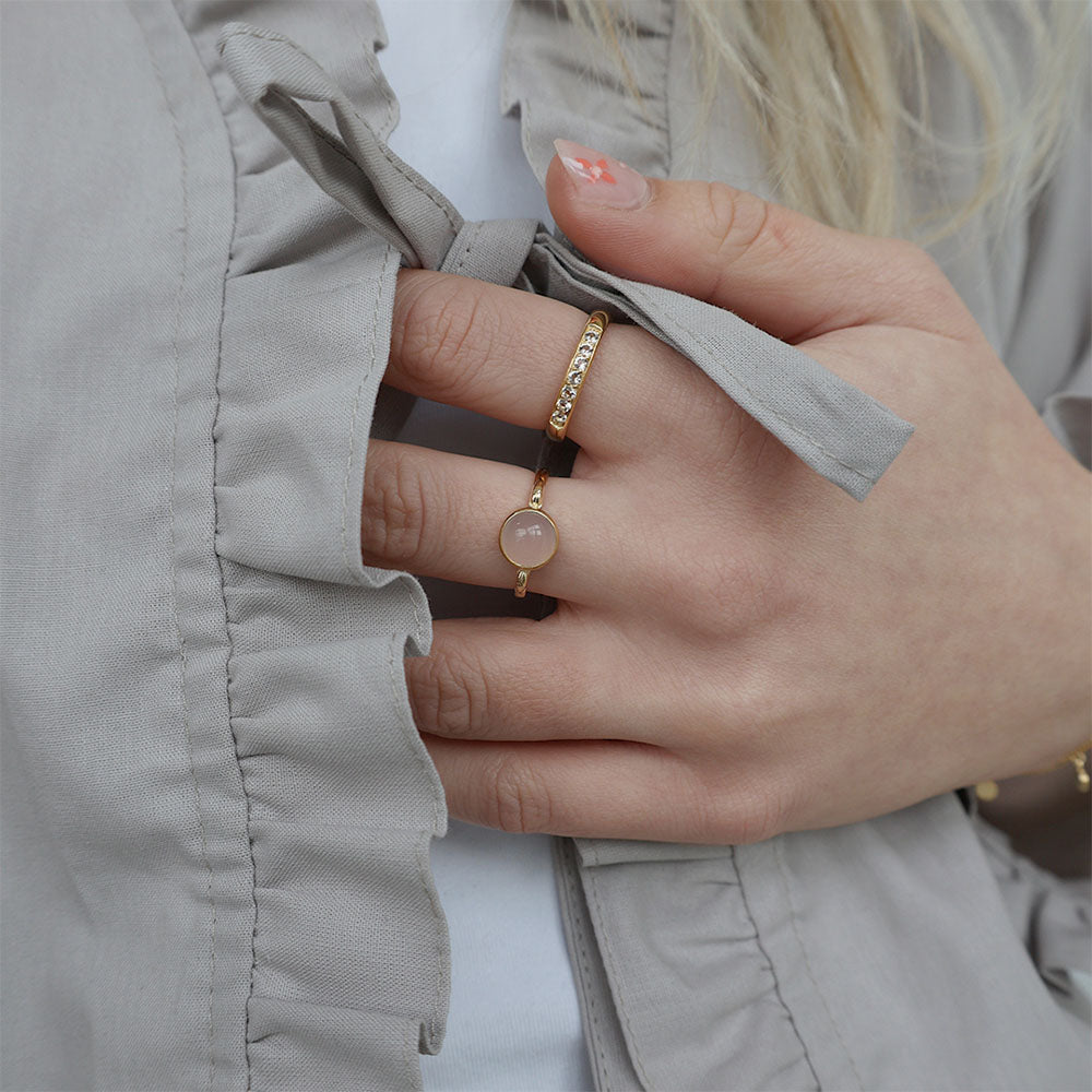 CHRISTINAS Pink Chalcedony ring skaber en dejlig sindsro, som hjælper med at berolige oprørte nerver. Den smukke pink Chalcedony har en yndefuld og harmonisk energi over sig. Det er en rigtig drømmering, der leder tankerne langt væk fra den travle hverdag.