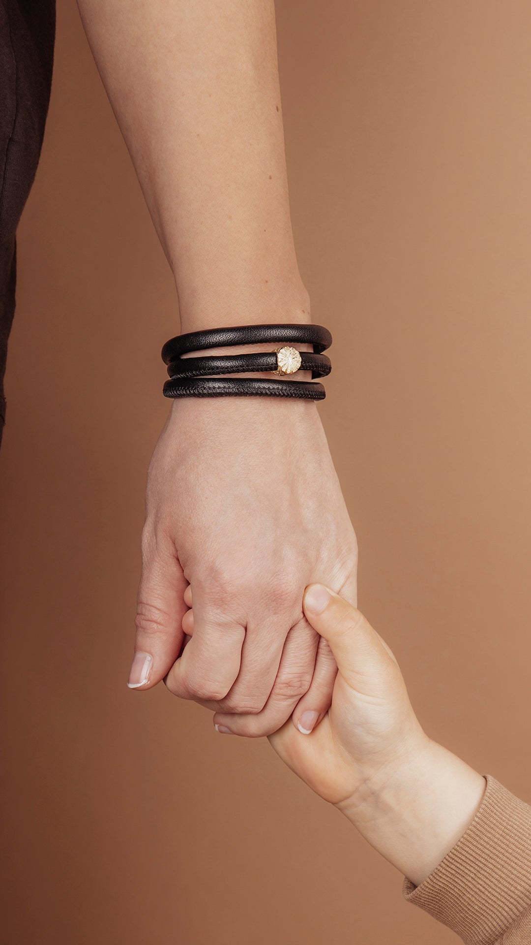 Det bløde læderarmbånd kombineret med den fine charm som symboliserer varme, styrke og lys — præcis som hende, der bærer det.