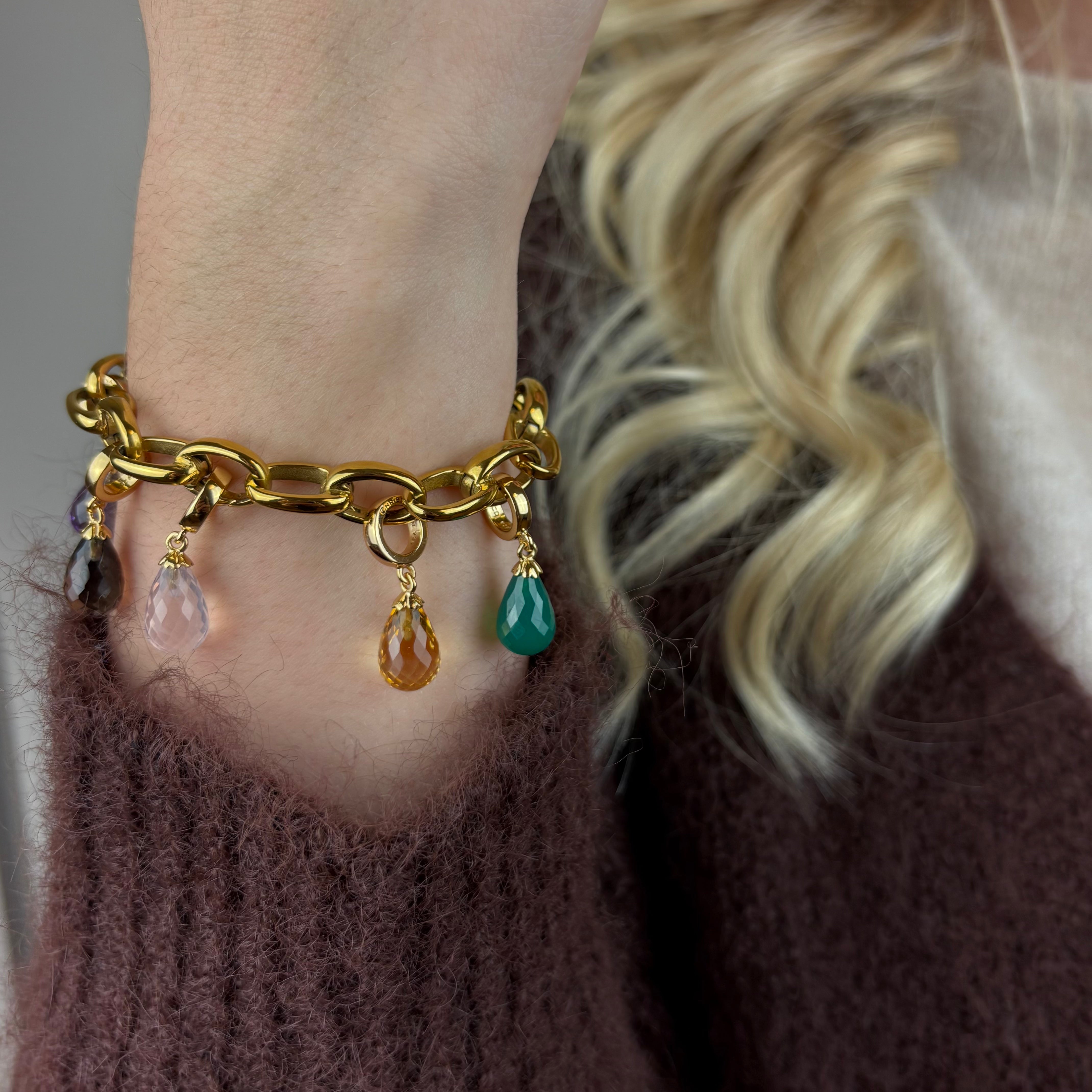 Citrine Drop Hænger Charm 6 mm Til Armbånd - Blankpoleret Forgyldt Sterling Sølv m. 1 Citrin
