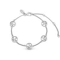 "Tree of Life" armbånd med livets træ i hver af de fem smukke cirkler, der repræsenterer forskellige aspekter af livet og forbindelsen til naturen. Armbåndet er justerbart og kan tilpasses til din ønskede pasform. Derudover kan det også bruges som en elegant ankelkæde ved at tilføje en ankelkæde-forlænger. Bær dette armbånd for at minde dig om den evige cyklus af livet og den dybe forbindelse mellem alle levende væsener. Det er et symbol på styrke, vækst og harmoni.