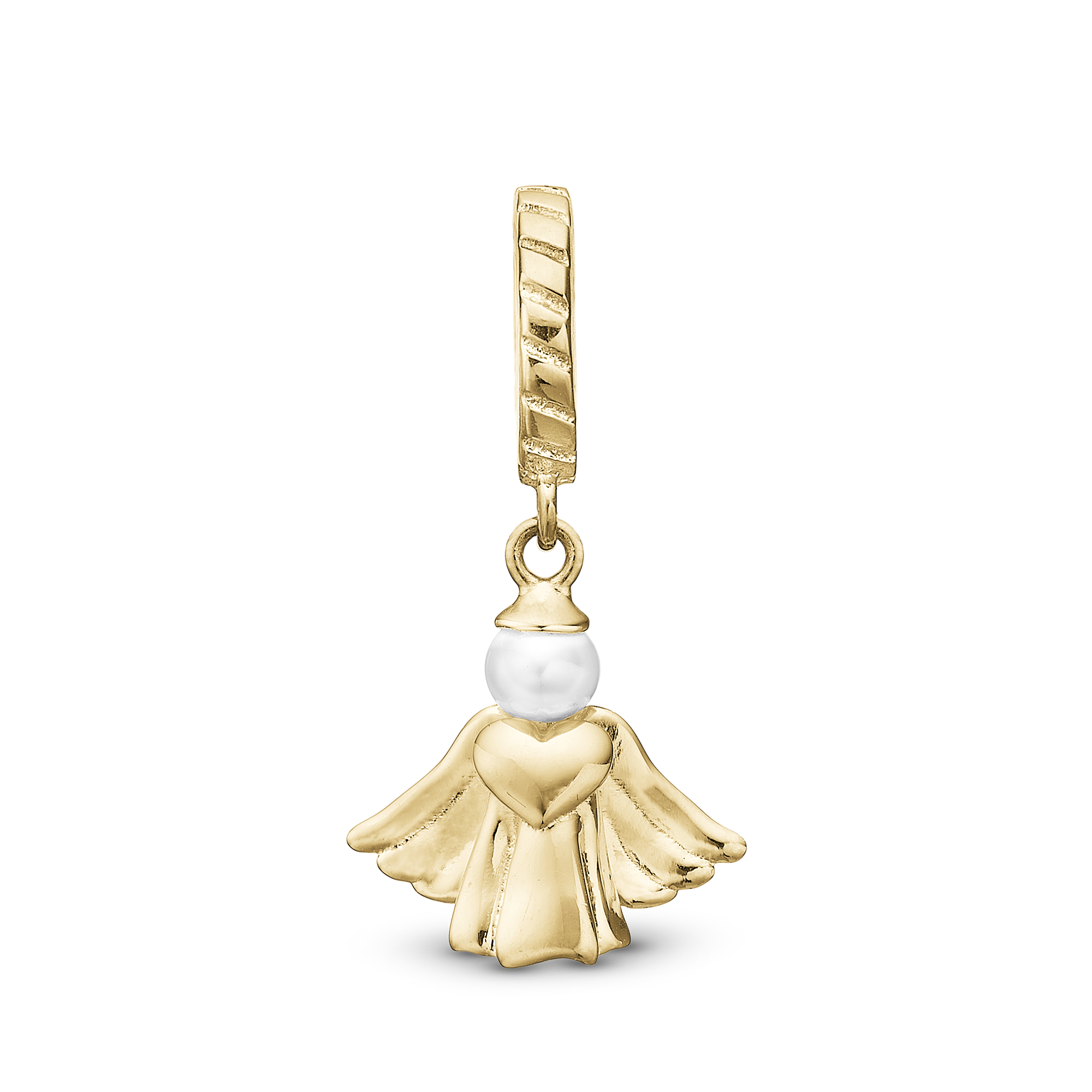 Heavenly Angel Hænger Charm 6 mm Til Armbånd - Blankpoleret Forgyldt Sterling Sølv m. 1 Ferskvandsperle