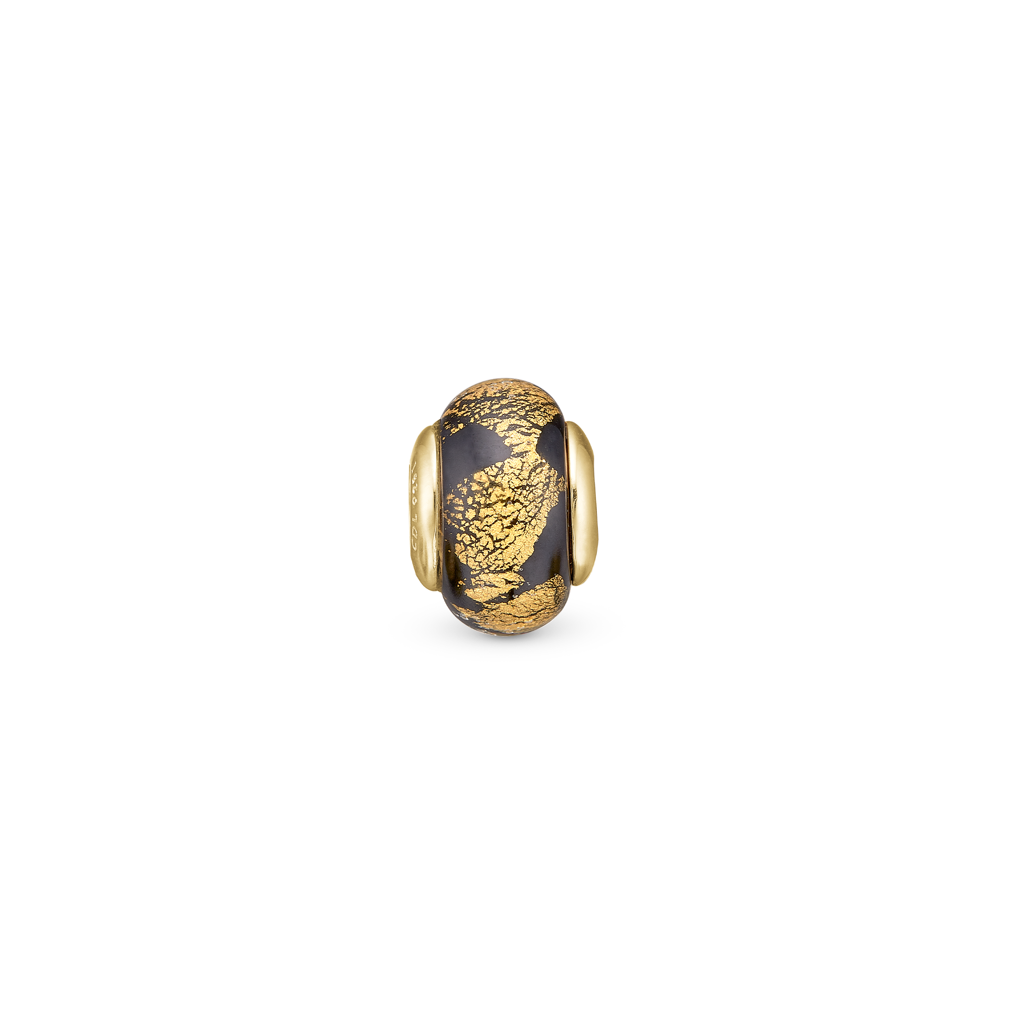 Golden Black Globe - Charm 4 mm Til Armbånd - Forgyldt Sterling Sølv m. 1 Glas