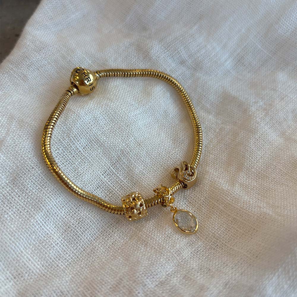 Moving Crystal - Hænger Charm 4 mm Til Armbånd - Forgyldt Sterling Sølv m. 1 Krystalkvarts