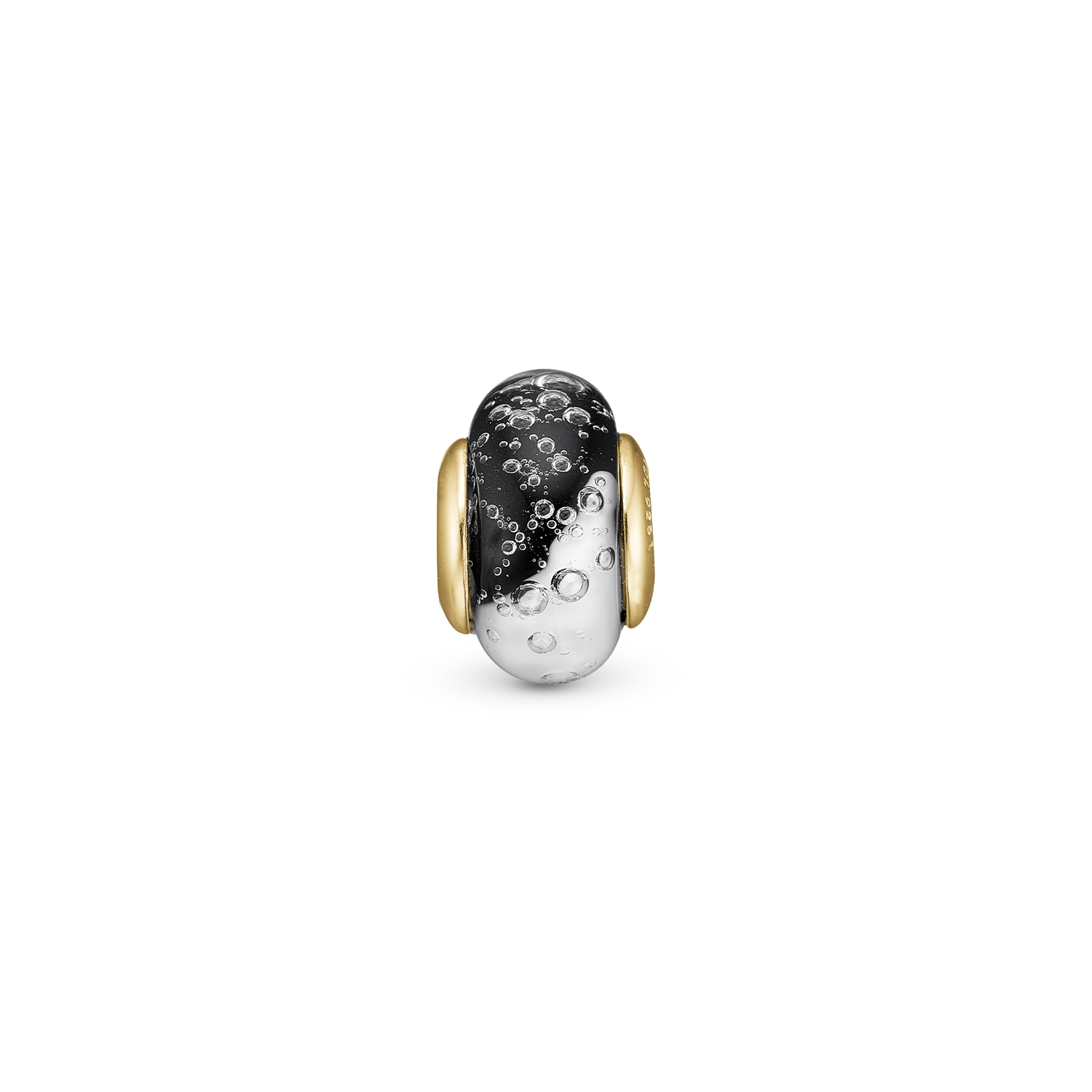 Bubbly Yin & Yang Globe Charm 6 mm til Classic Læderarmbånd - Forgyldt Sterling Sølv m. Glas
