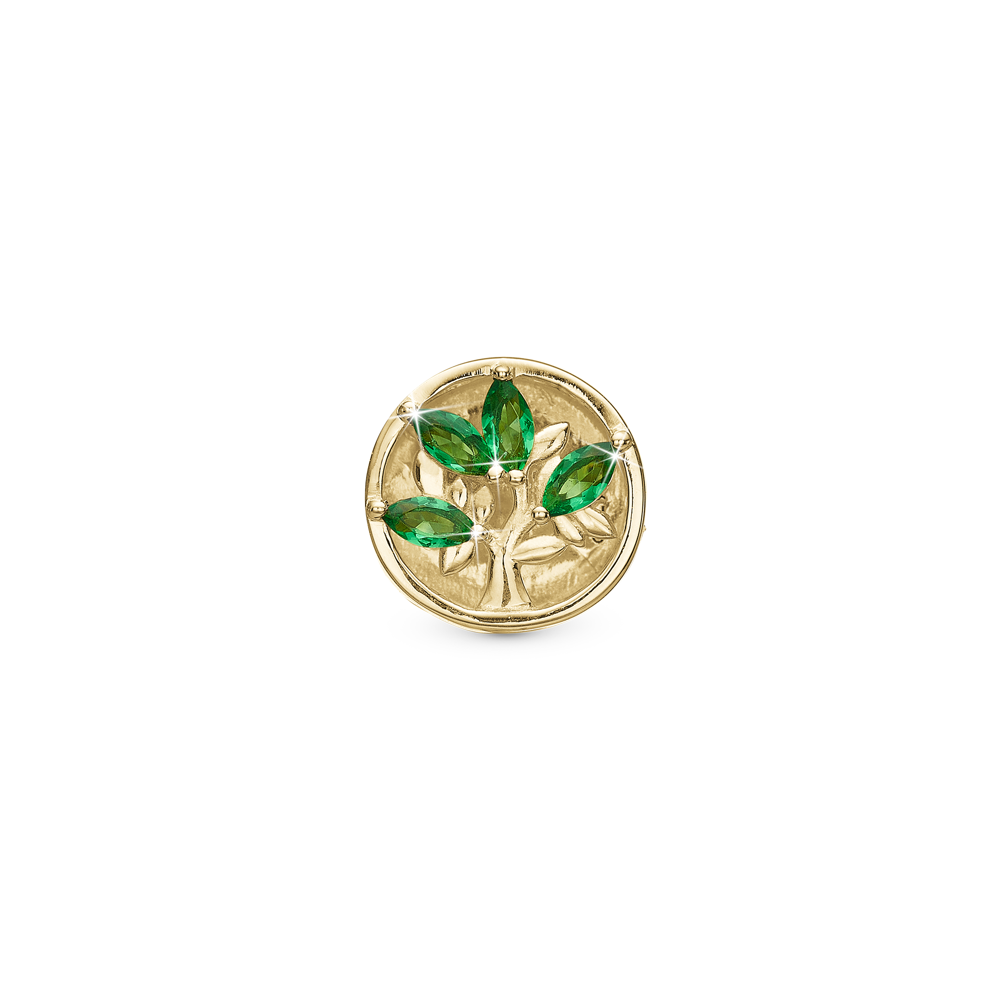 Green Life Charm 6 mm til Classic Læderarmbånd - Forgyldt Sterling Sølv m. 4 Grønne Cubic Zirkonia