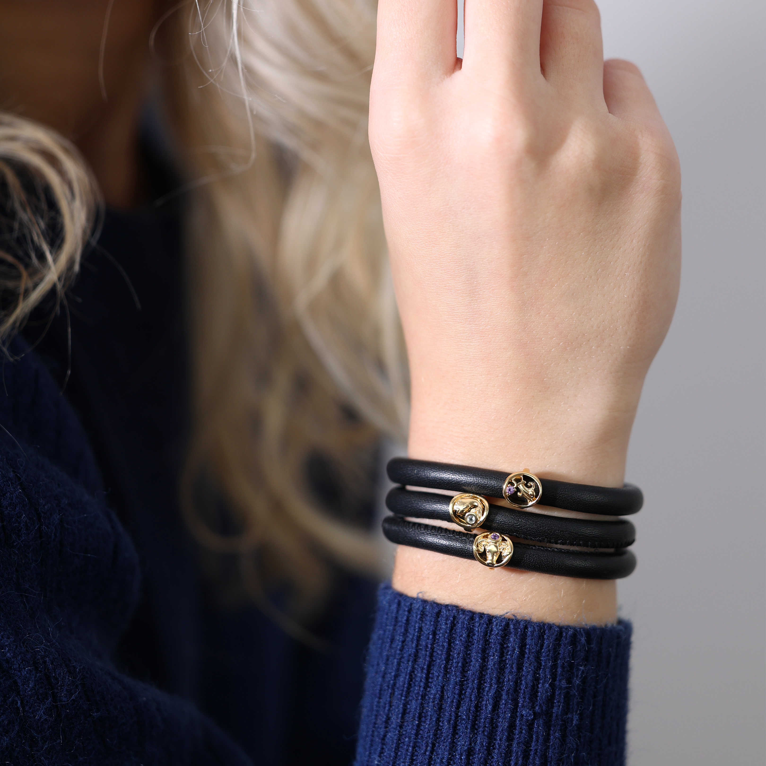 Stjernetegn Vandmand Charm 6 mm til Classic Læderarmbånd - Blankpoleret Forgyldt Sterling Sølv m. 1 Ametyst