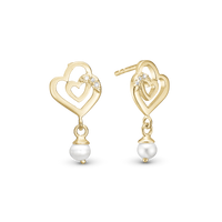 Two Hearts ørestikker er en kærlig påmindelse om forbundethed og kærlighed. De er formet som to hjerter, der forenes i et hjerte, og er smukt indsat med skinnende cubic zirconia sten. Elegante ferskvandsperler dingler forsigtigt under hjerterne, tilføjer et strejf af ynde og femininitet. Disse ørestikker er både symbolske og stilfulde og kan bæres som et udtryk for kærlighed, intimitet og sammenhold.