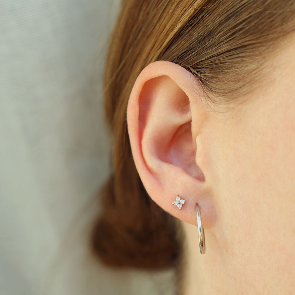 Magic pink Enkelt Ørestik / Single Stud - Sterling Sølv m. 4 Pinke Cubic Zirkonia
