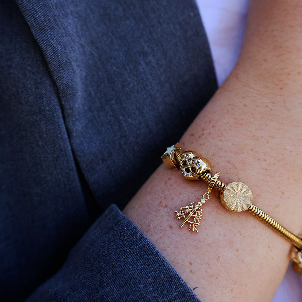 Christmas 2025 - Christmas Tree - Hænger Charm 4 mm Til Armbånd - Blankpoleret Forgyldt Sterling Sølv