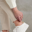 Forlængeren monteres nemt og giver dit armbånd den ekstra længde, der skal til for at bære det som ankelsmykke.
