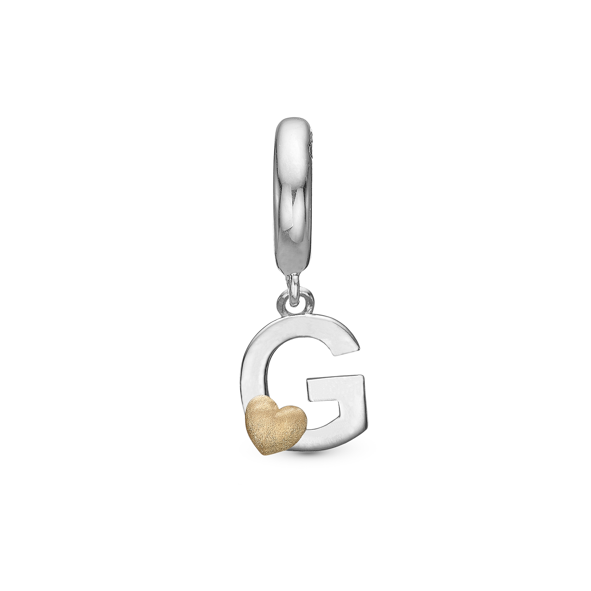 Bogstav G charm fra CHRISTINA er udarbejdet i designet bi-color, og er derfor både til dig der bruger sølv men også forgyldt/ guldbelagt/ guld. Med CHRISTINA bogstavs-charms kan du fortælle din helt egen historie. Du kan vælge, at have dem som intialer for nogle du har nær, det kunne være dine børn, kone, mand eller kæreste. Sammensæt ord og bogstaver, der giver dit CHRISTINA Classic læderarmbånd, den betydning du leder efter i et personligt udtryk. Start din samling af personlige bogstavscharms fra CHRISTINA nu, og skab din helt egen historie. CHRISTINA bogstavs-charms er den perfekte personlige gaveidé, til dem du holder af. Bogstav G charm passer til Classic og 3-string