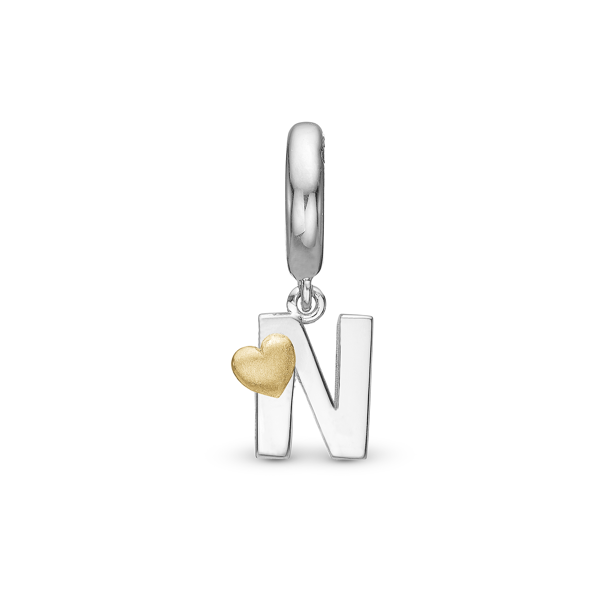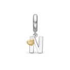 Bogstav N Hænger Charm 6 mm Til Armbånd - Blankpoleret Bicolor