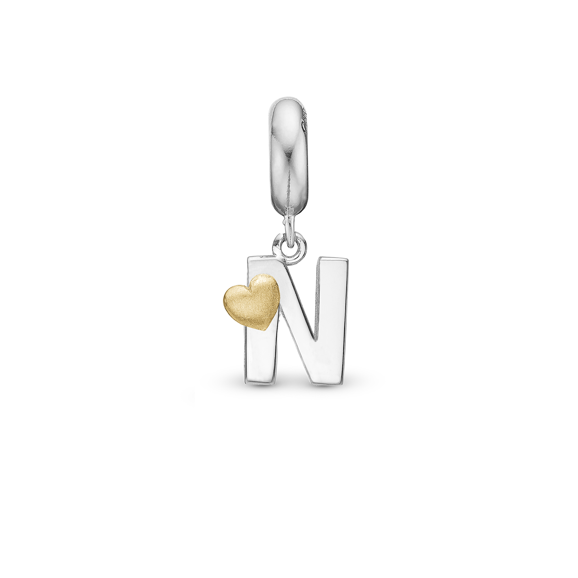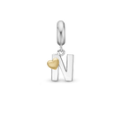 Bogstav N - Hænger Charm 4 mm Til Armbånd - Blankpoleret Bicolor