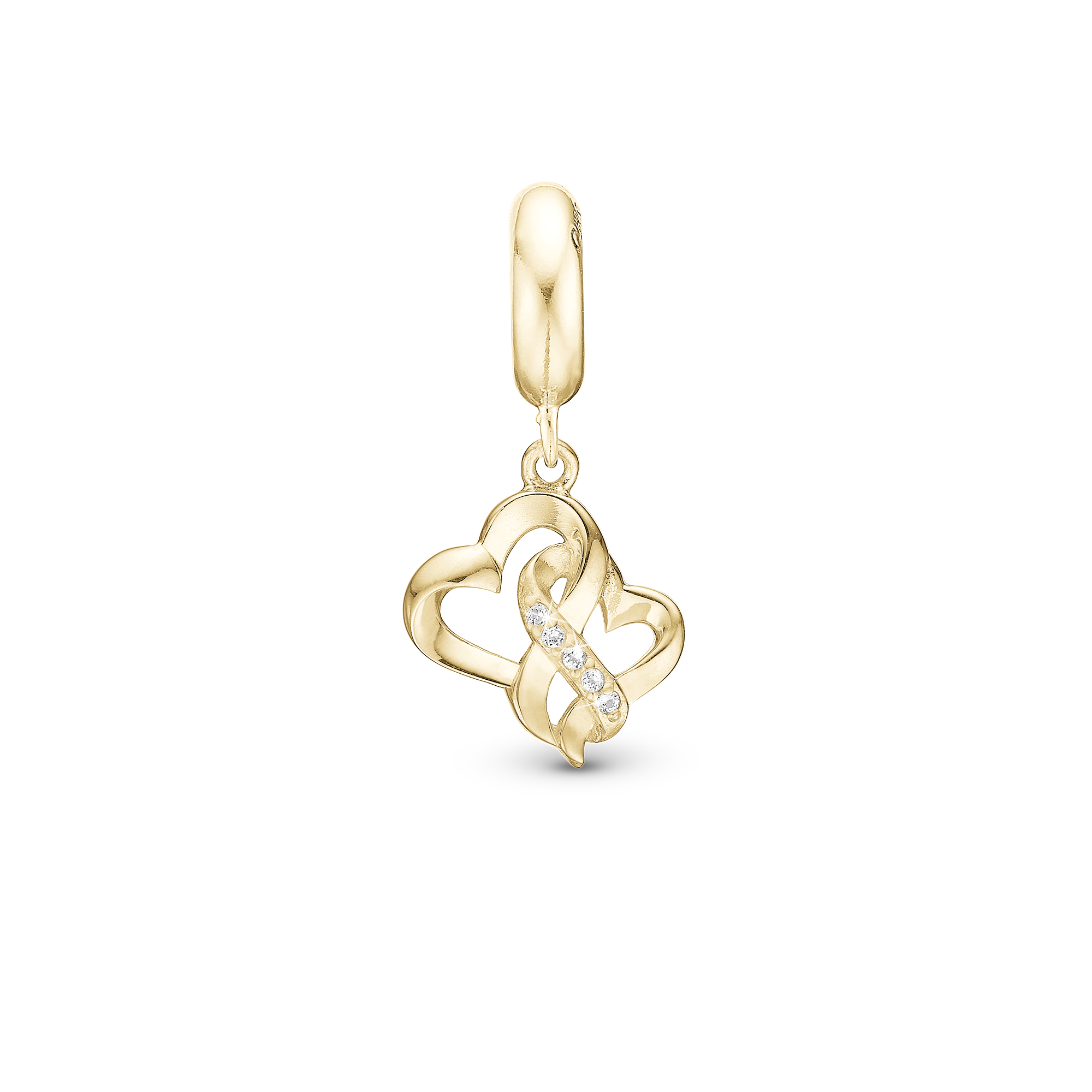 Mother Child True Love - Hænger Charm 4 mm Til Armbånd - Blankpoleret Forgyldt Sterling Sølv m. 6 Cubic Zirkonia
