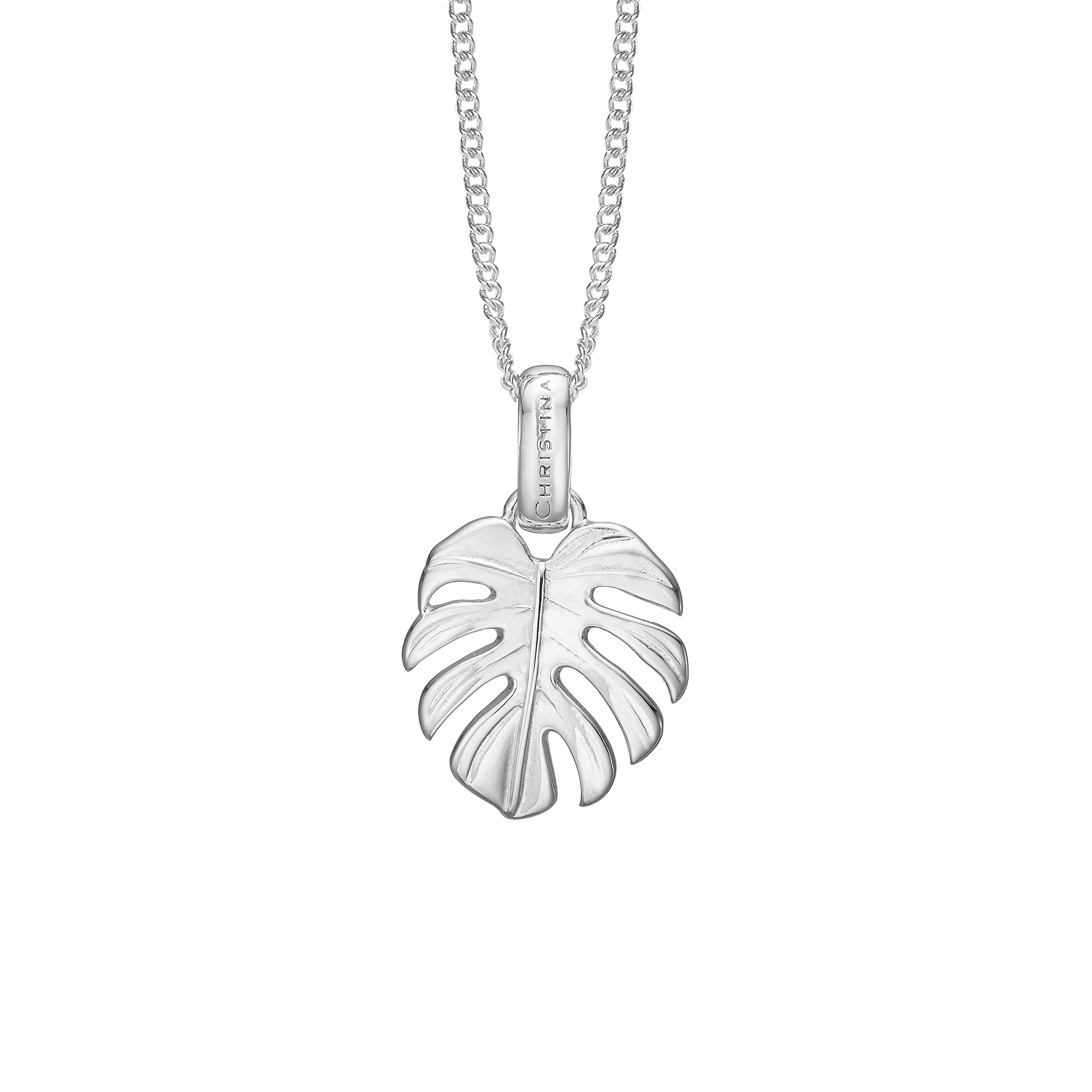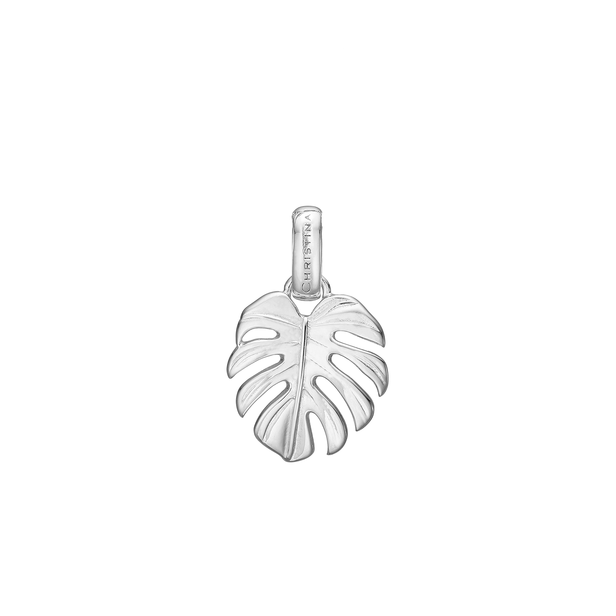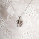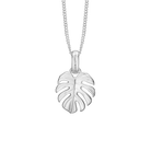 Sødeste vedhæng som et viftende monstera-blad, som egentlig stammer fra regnskovene i vestindien, men som mange af os i dag ynder at have i vores hjem. Det giver derfor både en hjemlig og tryg association men også en tanke til regnskovens dryppende eksotiske lyde. Dette bladvedhæng er i sterlingsølv.