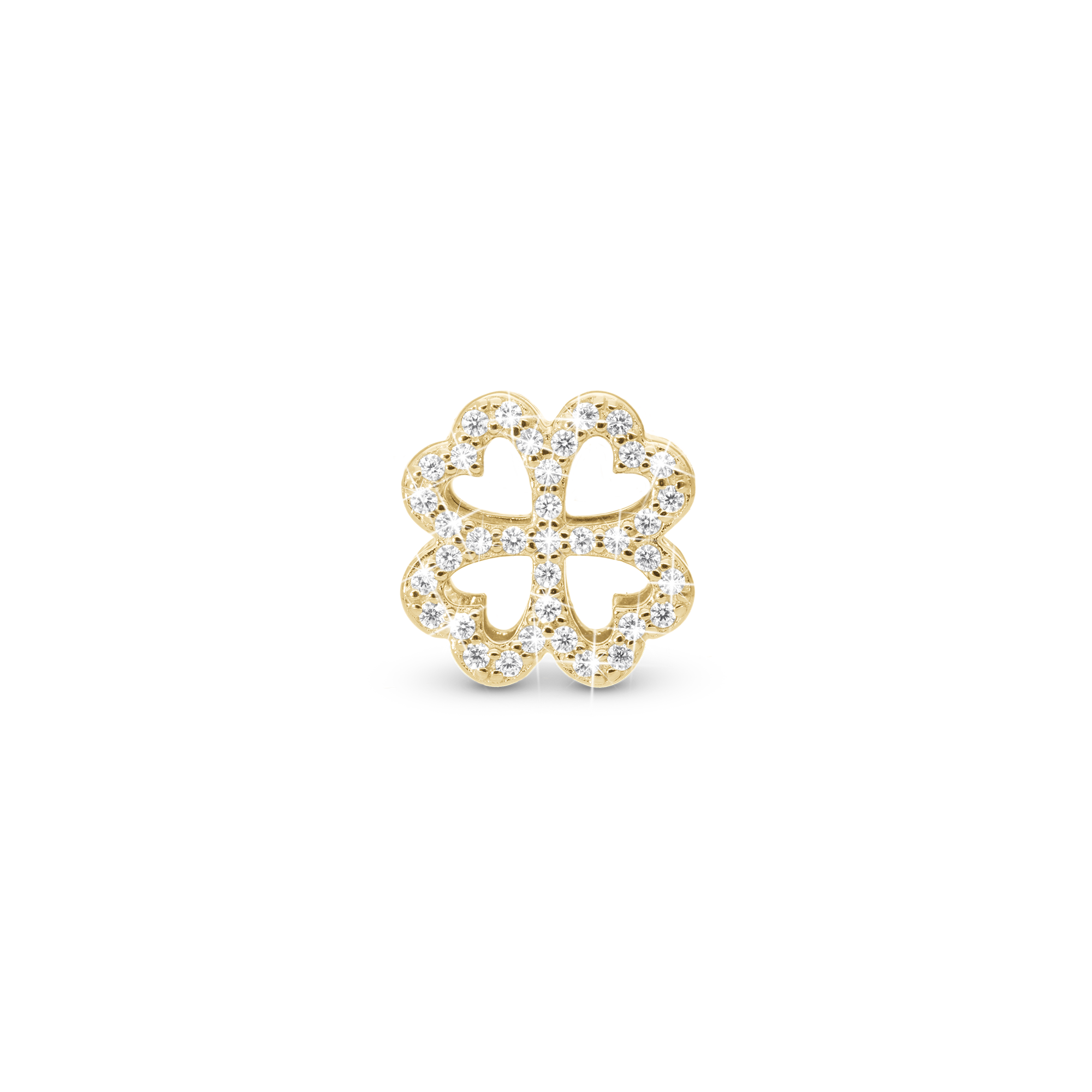 Shimmery Clover Charm 6 mm til Classic Læderarmbånd - Blankpoleret Forgyldt Sterling Sølv m. 1 Cubic Zirkonia