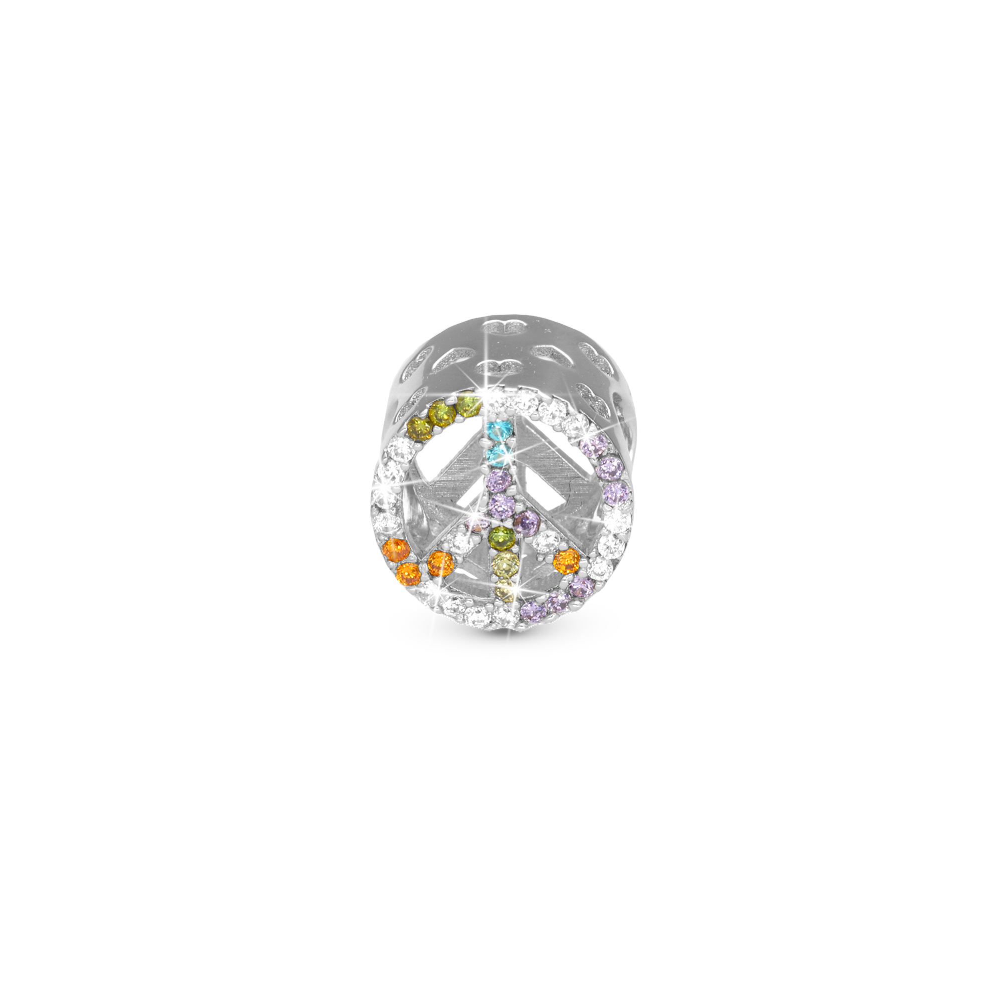 Shine in Peace Charm 6 mm til Classic Læderarmbånd - Blankpoleret Sterling Sølv m. 38 Multi color Cubic Zirkonia