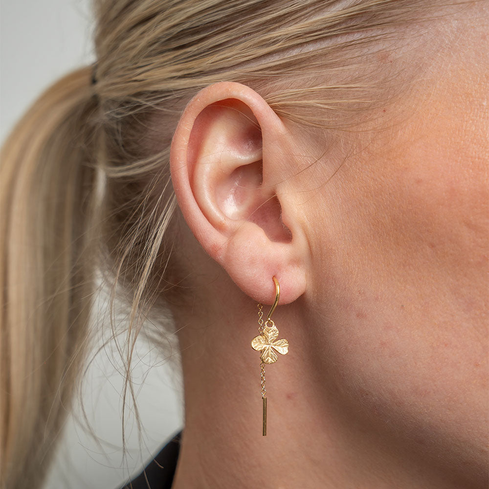 Bring lidt held med hver dag med dissee elegante Long Four Leaf Clover øreringe i ægte forgyldt sterling sølv. Det klassiske firkløver-design symboliserer held og kærlighed - og er den perfekte gave til en, du holder af.