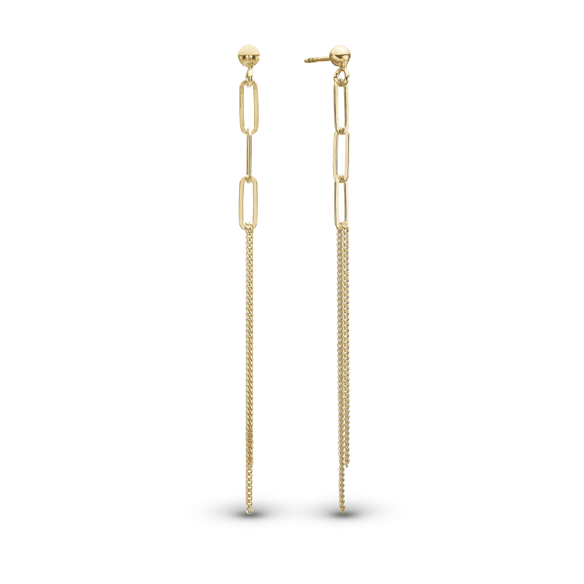 Disse øreringe er den perfekte gave til enhver lejlighed. Overrask en veninde, søster eller mor med et par øreringe, der vil bringe glæde og elegance til deres smykkesamling. Vores øreringe med kæder er også ideelle til at pryde ethvert outfit, uanset om det er til hverdag eller til særlige lejligheder.