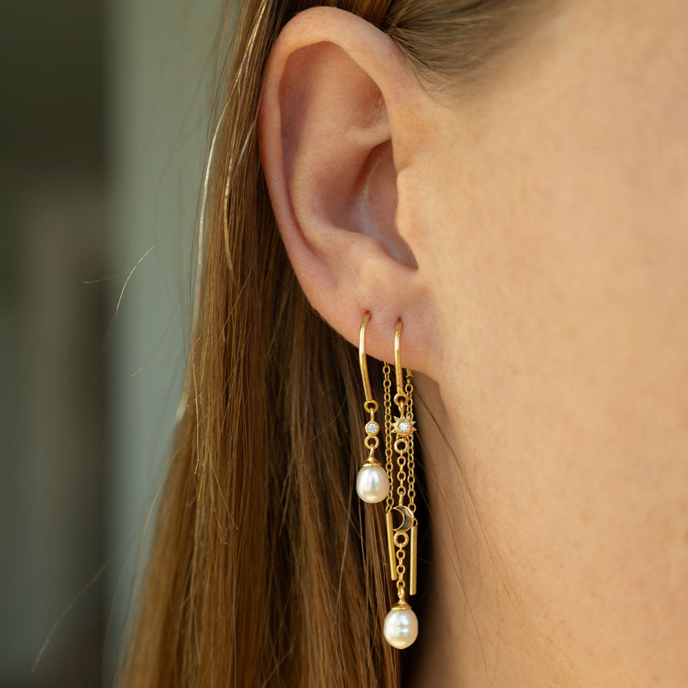 Day & Night Hænge Øreringe - Blankpoleret Forgyldt Sterling Sølv m. 2 Hvide Ferskvandsperler
