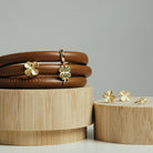 Rengør skånsomt med en tør pudseklud for at bevare guldbelægningen, da denne vil blive slidt over tid. Overvej genforgyldning, hvis smykket mister sin glans