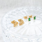 Green Baguette Ørestikker - Blankpoleret Forgyldt Sterling Sølv m. 2 Grønne Cubic Zirkonia