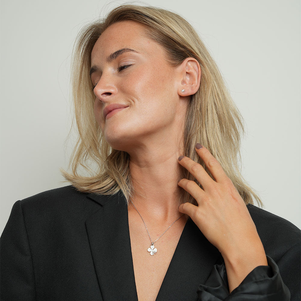 En lille og fin firkløver. Firkløveren er et klassisk symbol for held og lykke. Med sin børstede overflade får ørestikken en subtil og naturlig udstråling. Den minimalistiske og delikate størrelse gør den velegnet til at kombinere med andre små ørestikker. Bær denne ørestik som en påmindelse om at søge heldet i livet og vær åben over for positive muligheder.