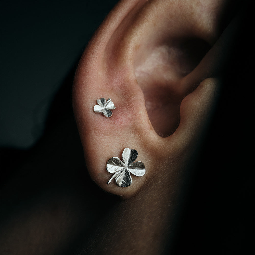 Four Leaf Clover Enkelt Ørestik / Single Stud - Sterling Sølv